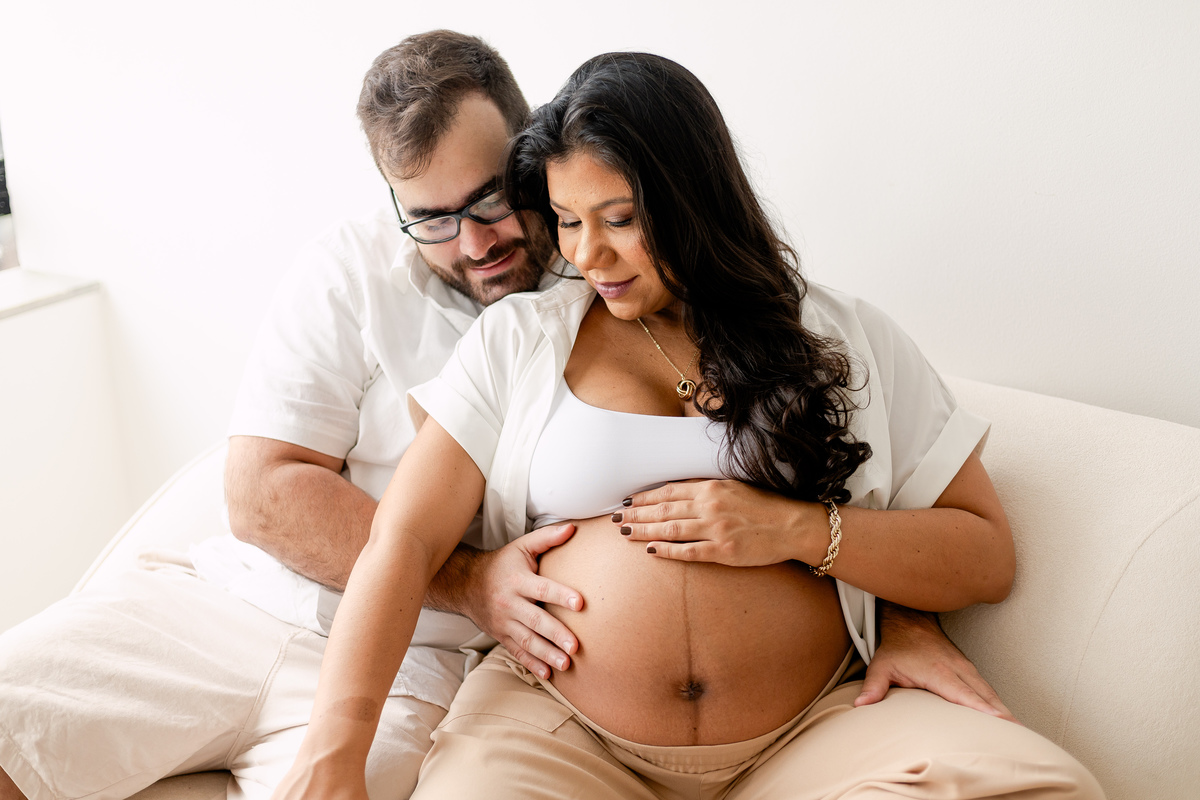 Esse ensaio de gestante realizado no nosso estúdio minimalista e com luz natural, que contou os primeiros momentos da história da Giovanna, ainda na barriga