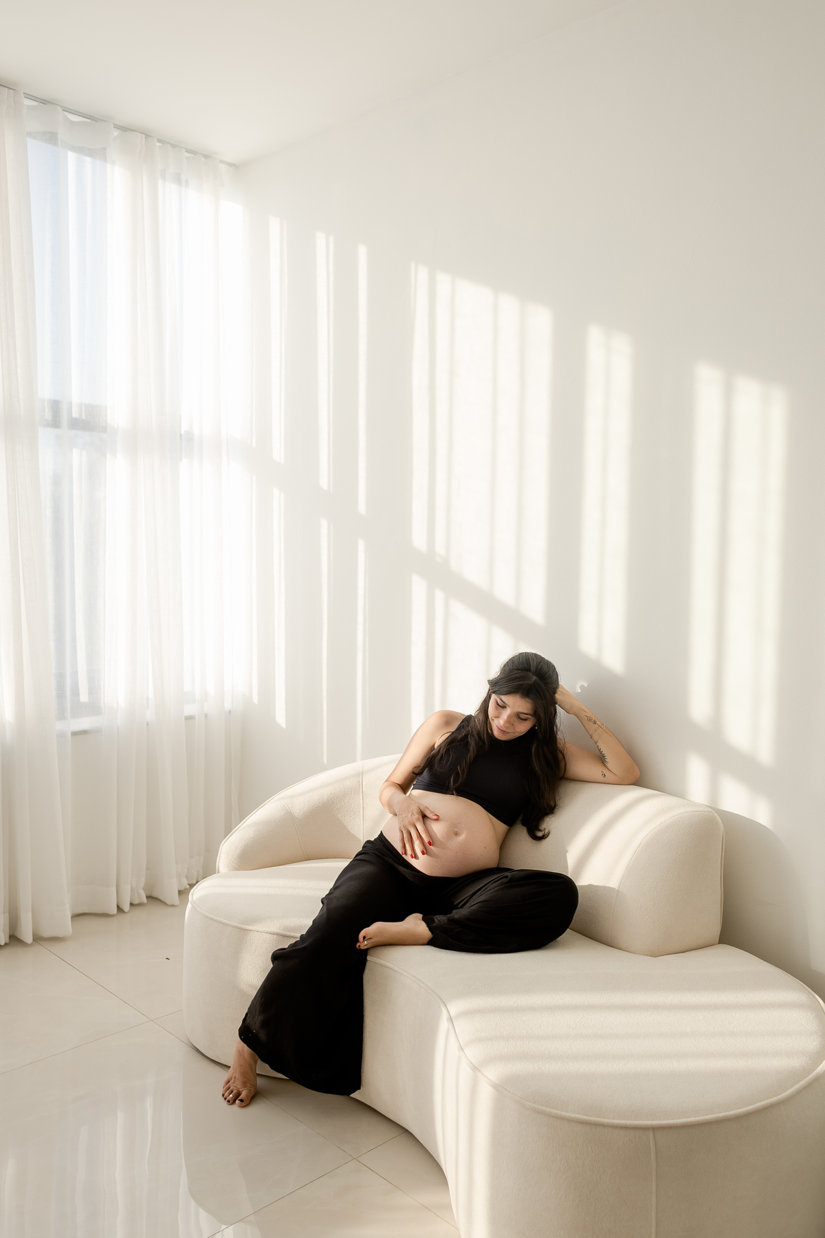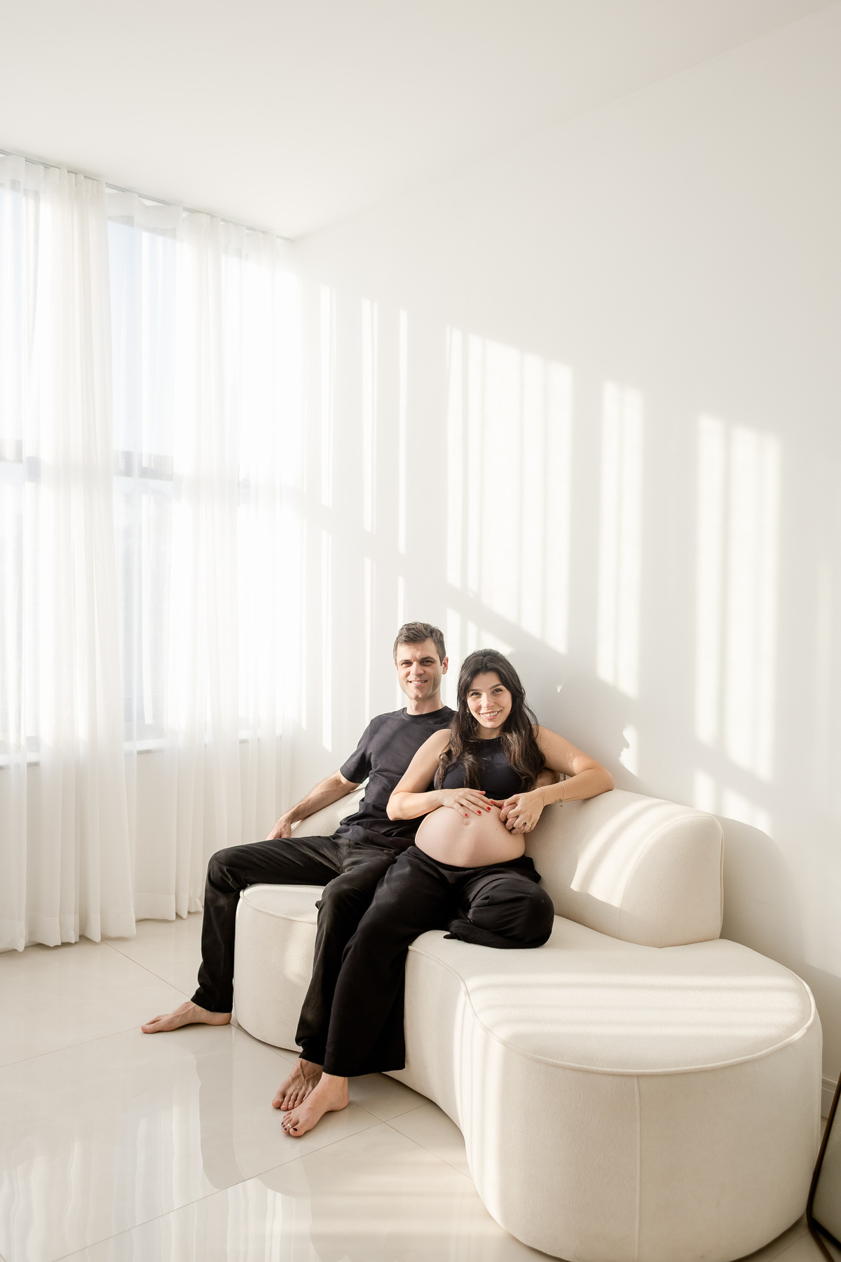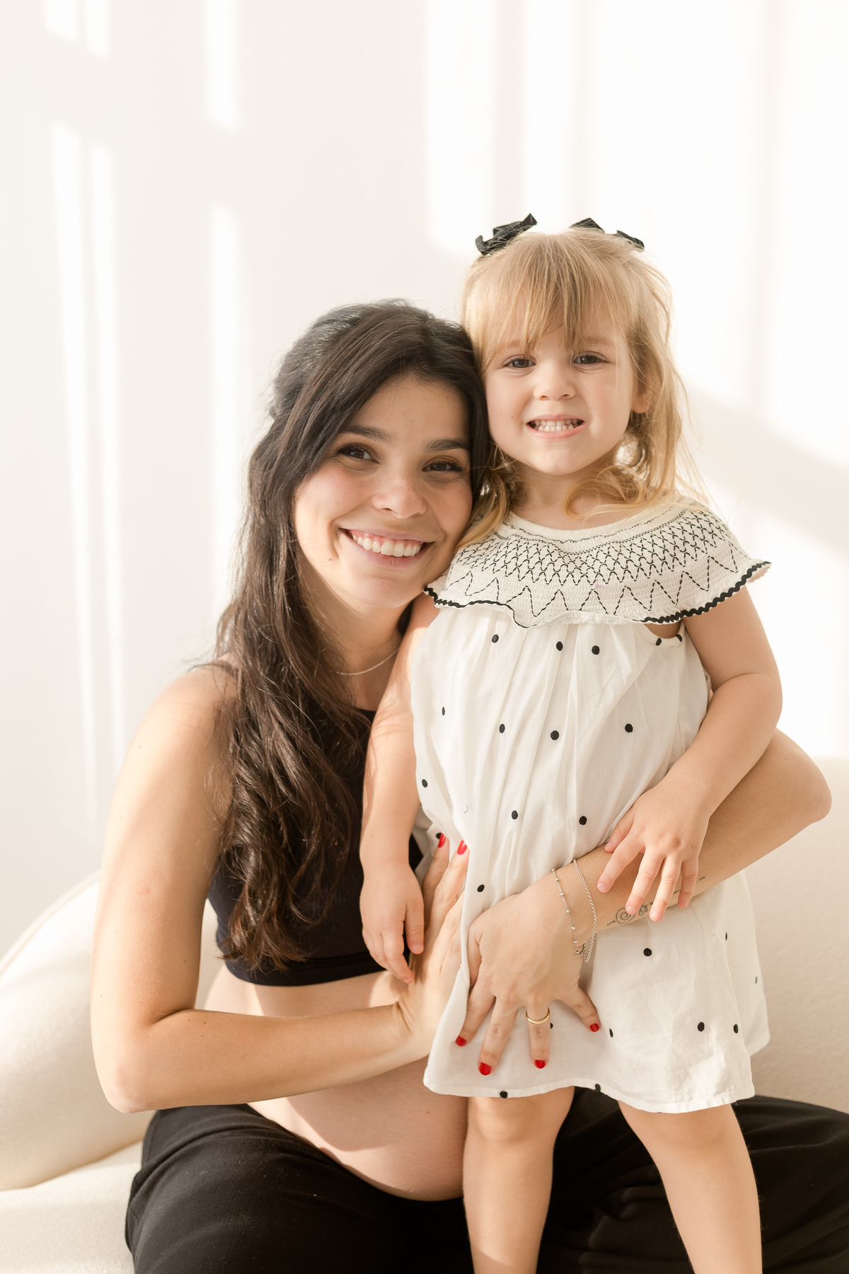 A Helena quando me procurou queria um ensaio autêntico e único, com muita luz natural, sombras, elegância e amor em família com a filha mais velha. Fizemos um ensaio de gestante do jeitinho que ela queria, aqui no nosso estúdio, que fica na Ilha do Governador, podemos criar um ambiente confortável pra criar fotos que ficarão para sempre, de um jeito afetivo e elegante.
