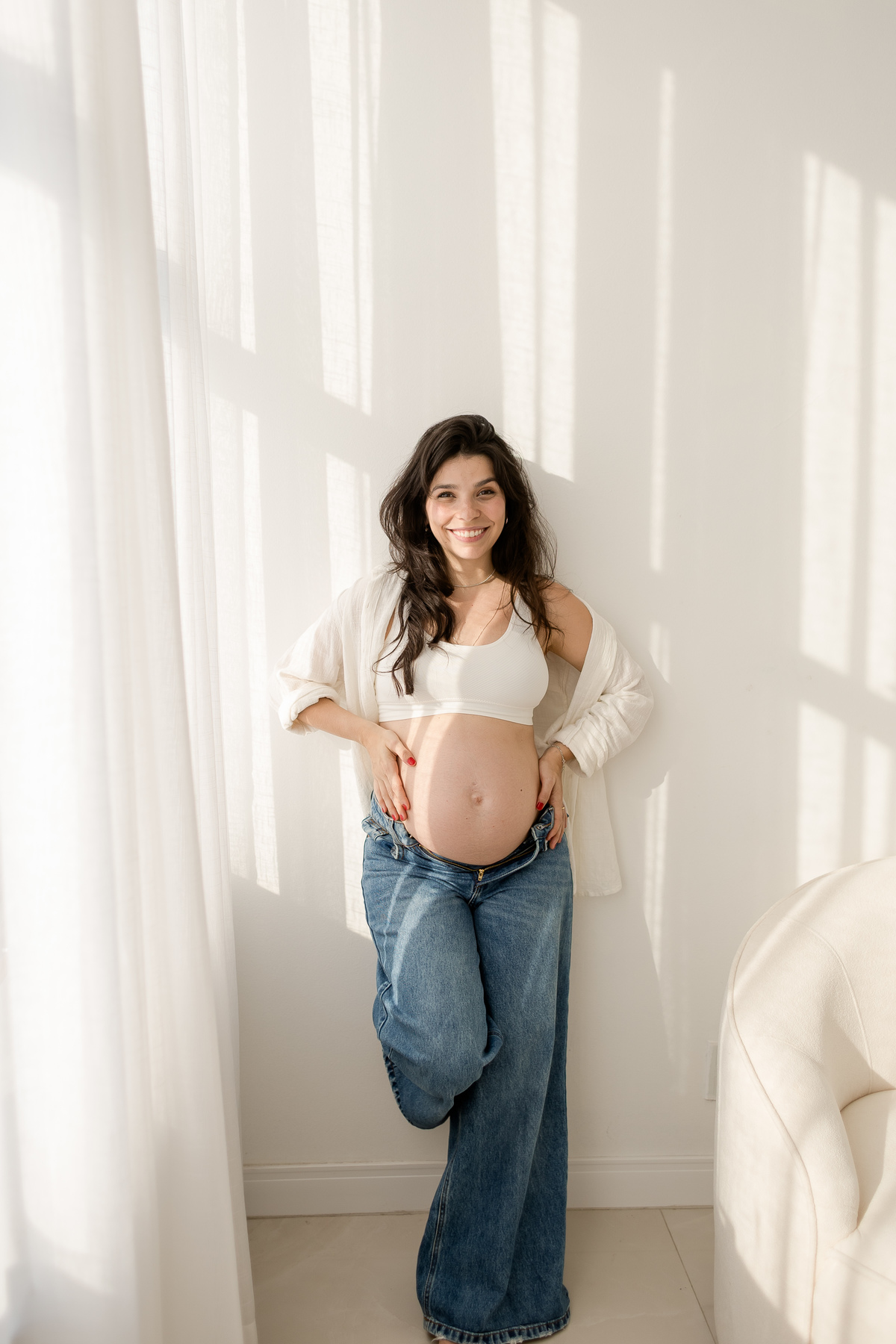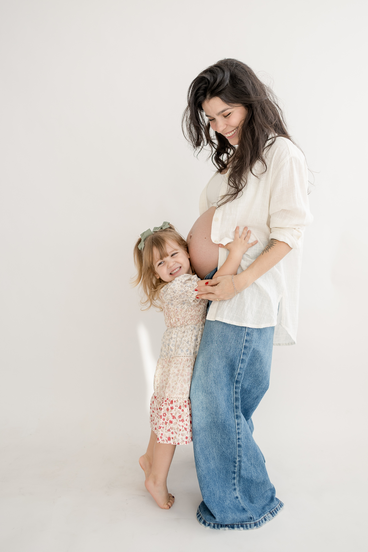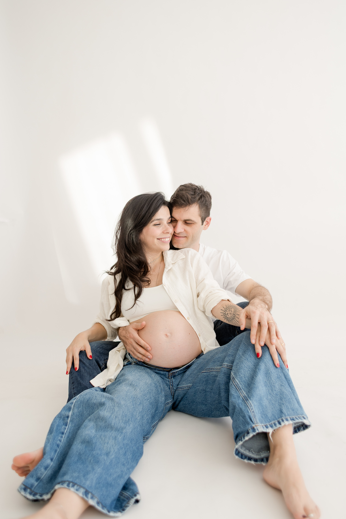 A Helena quando me procurou queria um ensaio autêntico e único, com muita luz natural, sombras, elegância e amor em família com a filha mais velha. Fizemos um ensaio de gestante do jeitinho que ela queria, aqui no nosso estúdio, que fica na Ilha do Governador, podemos criar um ambiente confortável pra criar fotos que ficarão para sempre, de um jeito afetivo e elegante.